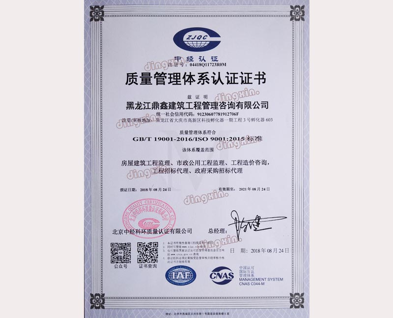 黑龍江鼎鑫建筑工程管理咨詢有限公司成立于2005年,注冊資金400萬元。具備中華人民共和國住房和城鄉(xiāng)建設(shè)部批準(zhǔn)的工程招標(biāo)代理機構(gòu)資格、中華人民共和國財政部批準(zhǔn)的政府采購招標(biāo)代理機構(gòu)資格、黑龍江省商務(wù)廳批準(zhǔn)的機電產(chǎn)品國際招標(biāo)代理機構(gòu)資格、中華人民共和國住房和城鄉(xiāng)建設(shè)部批準(zhǔn)的工程造價咨詢甲級資質(zhì)、黑龍江省住房和城鄉(xiāng)建設(shè)廳批準(zhǔn)的房屋建筑工程監(jiān)理乙級(市政公用工程監(jiān)理乙級資質(zhì))。主要從事建設(shè)工程及政府采購招標(biāo)、造價咨詢、工程監(jiān)理、項目管理等業(yè)務(wù)。